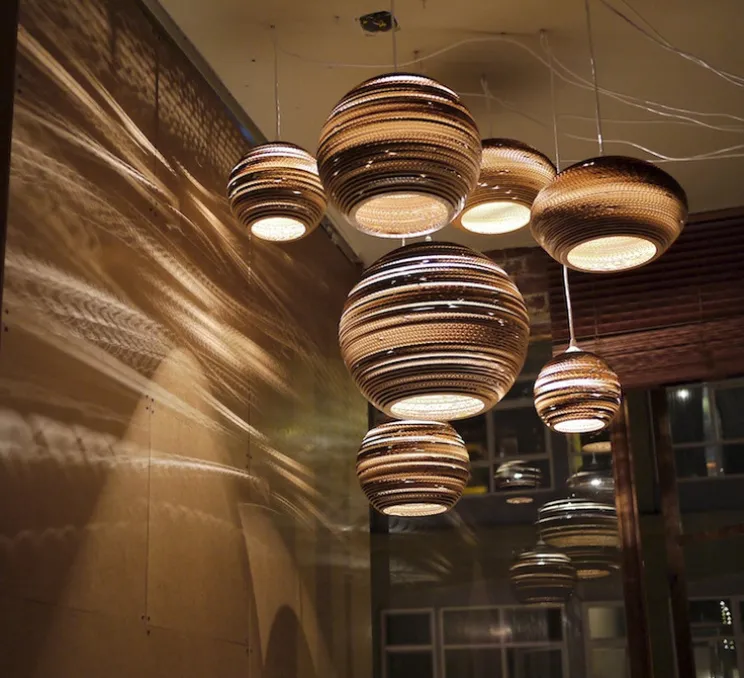 Avec ses lignes douces circulaires, la Moon24 s’intègre parfaitement dans une décoration de style naturel. Entièrement fabriquée à la main à partir de carton recyclé, elle s’inscrit dans une démarche durable et artisanale. Sa structure en carton ondulé filtre la lumière pour offrir un éclairage chaleureux et enveloppant. Installée au-dessus d’une table à manger, dans un salon ou une chambre, elle crée une atmosphère intime tout en apportant une touche sculpturale à votre intérieur. La suspension Moon24 s’impose comme un luminaire central idéal pour offrir une esthétique naturelle et authentique à vos espaces.