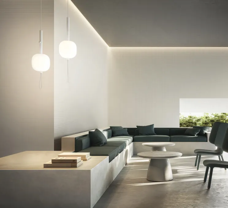 Découvrez la nouvelle suspension Motus, finition blanche, imaginée par le studio Schulab pour la célèbre maison italienne KDLN.