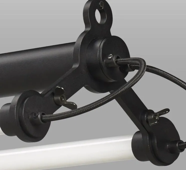 Mr Tubes se compose de deux tubes de 96,6cm de long. La suspension a une hauteur de 15,8 et une profondeur de 24,6. Elle est suspendue à un câble de 3m de long, ajustable en fonction de vos besoins.
