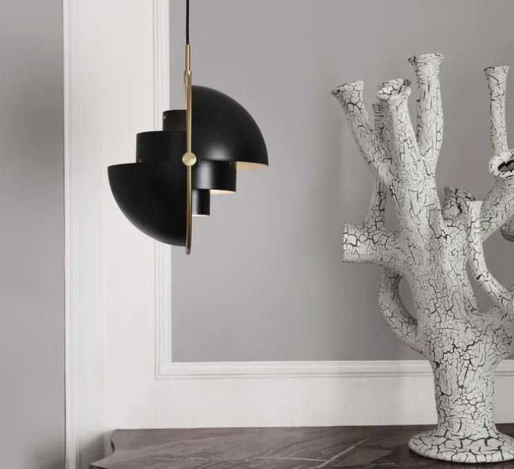 La maison d’édition Gubi réédite la célèbre suspension Multi-Lite, laiton et noir anthracite de Louis Weisdorf.
