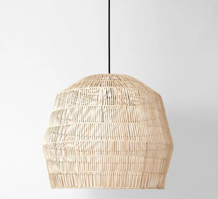 Pour la maison Ay Illuminate, les designers Ay Lin Heinen et Nelson Sepulveda conçoient la collection de suspensions en rotin Nama.