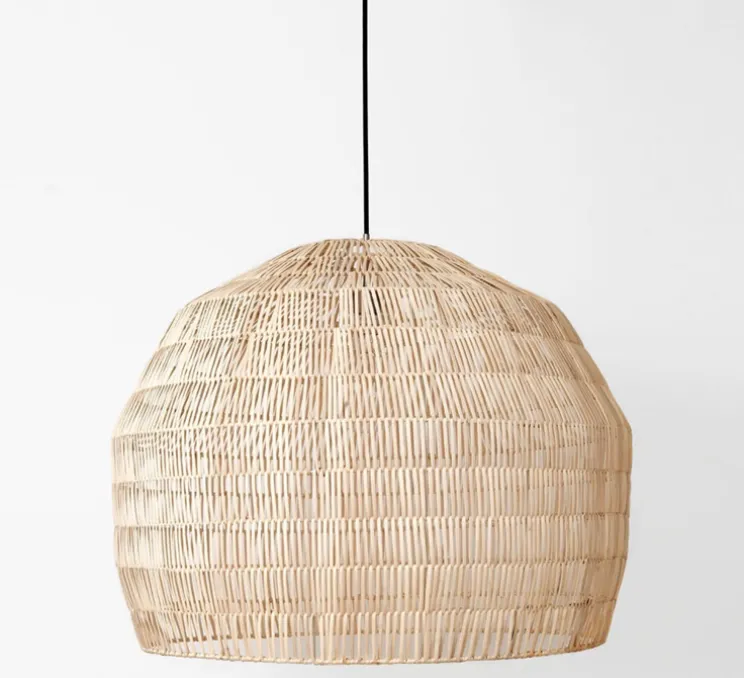 Pour la maison Ay Illuminate, les designers Ay Lin Heinen et Nelson Sepulveda conçoive la collection de suspensions en rotin Nama.