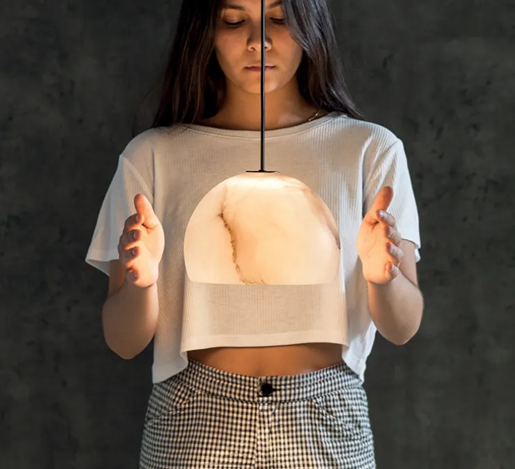 Pour cette création, le designer met en avant le matériau pour un rendu contemporain et intemporel. Son design réalisé d’une seule pièce d’albâtre donne du caractère à votre intérieur grâce aux veines qui ressortent lorsque la lumière est allumée. Elle est raffinée et légère et s’installe dans plusieurs pièces de votre environnement. Seule ou à plusieurs, la suspension Neil est parfaite pour sublimer un séjour, une salle à manger ou une cuisine.