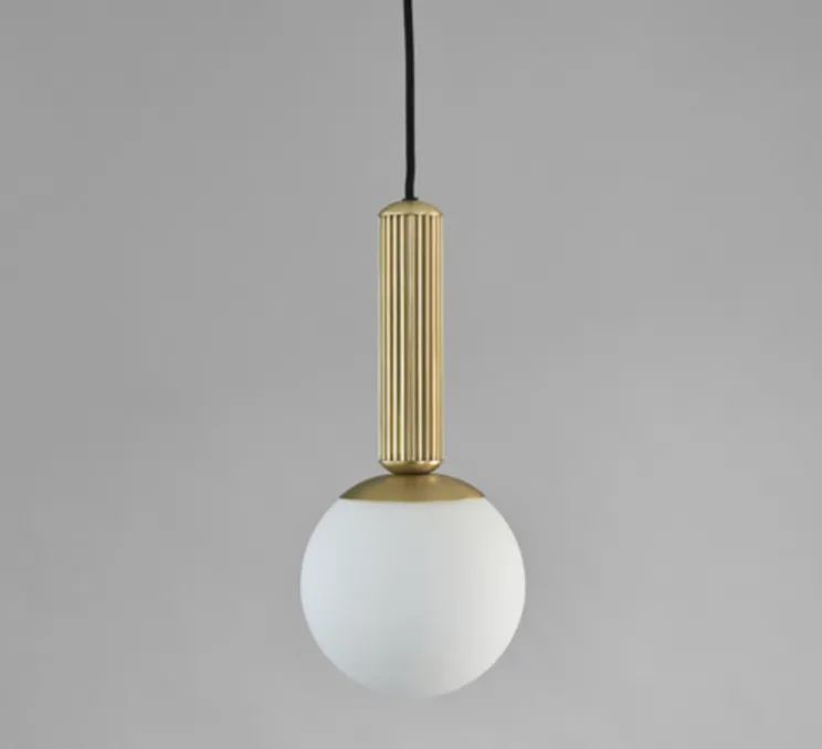 La suspension No. 2 est une affaire de détails et de proportions. Elle présente un étonnant détail de douille d’inspiration Art déco avec des lignes verticales qui ajoutent une qualité chatoyante à la lampe et à la lumière chaude provenant de l’abat-jour circulaire en verre opalin.