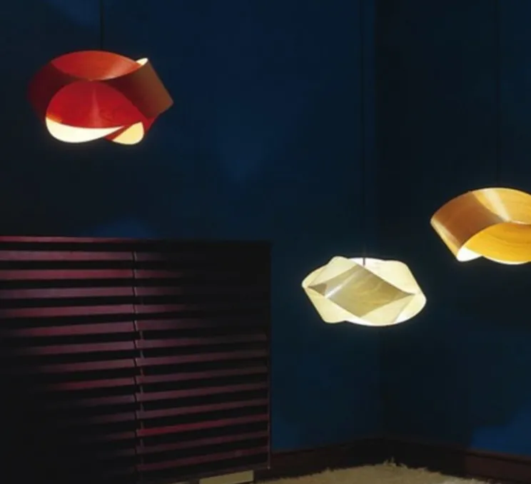 Composée d’une superposition de lamelles de bois courbées et assemblées à la main dans les ateliers LZF de Valence, la lampe Nut diffuse une lumière agréable et chaleureuse.