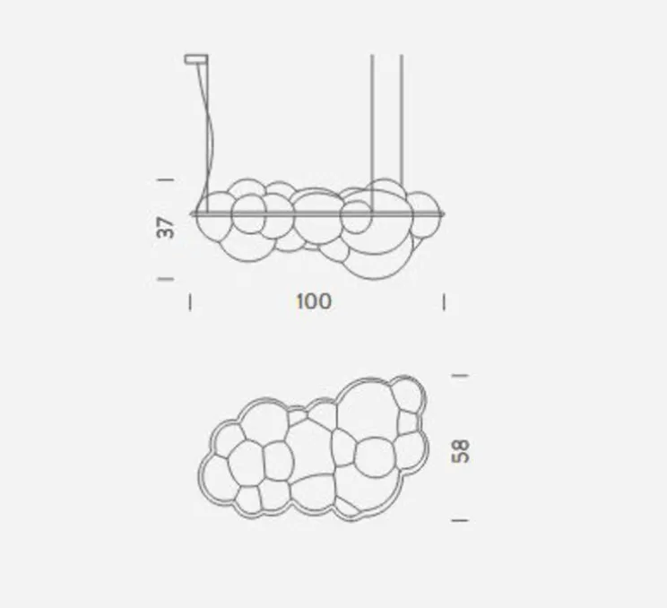 Conçu de polyéthylène opale naturel, ce nuage lumineux peut être suspendu au plafond à une distance choisie jusqu’à 3 mètres.