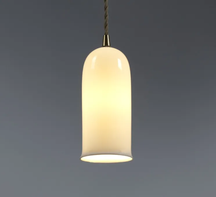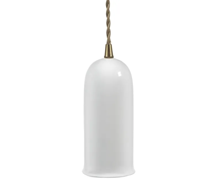 La suspension N°1 se compose d’un abat-jour cylindrique en porcelaine Bone China ultrafine rattaché à un câble tissé par une attache en laiton. Pour adoucir ce luminaire à la forme intemporelle, le bas de l’abat-jour est légèrement recourbé pour avoir la forme d’une clochette. Chaque forme des lampes de la collection est finie à la main pour incarner l’esthétique réfléchie d’Anita Le Grelle.