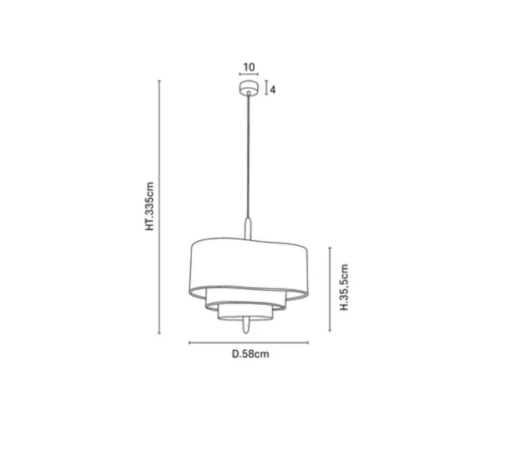 La suspension mesure 35 cm de hauteur et 58 cm de diamètre. Le câble mesure 3 m.