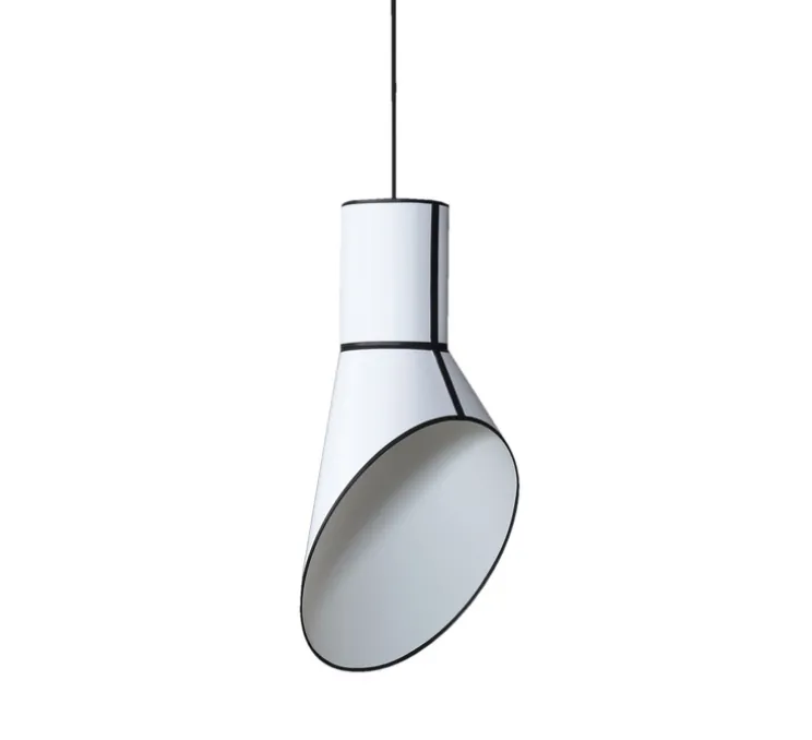 Telle une cheminée de Cargo, le designer Hervé Langlais signe une collection qui habillera votre salon de manière unique avec cette suspension noire et blanche très élégante.