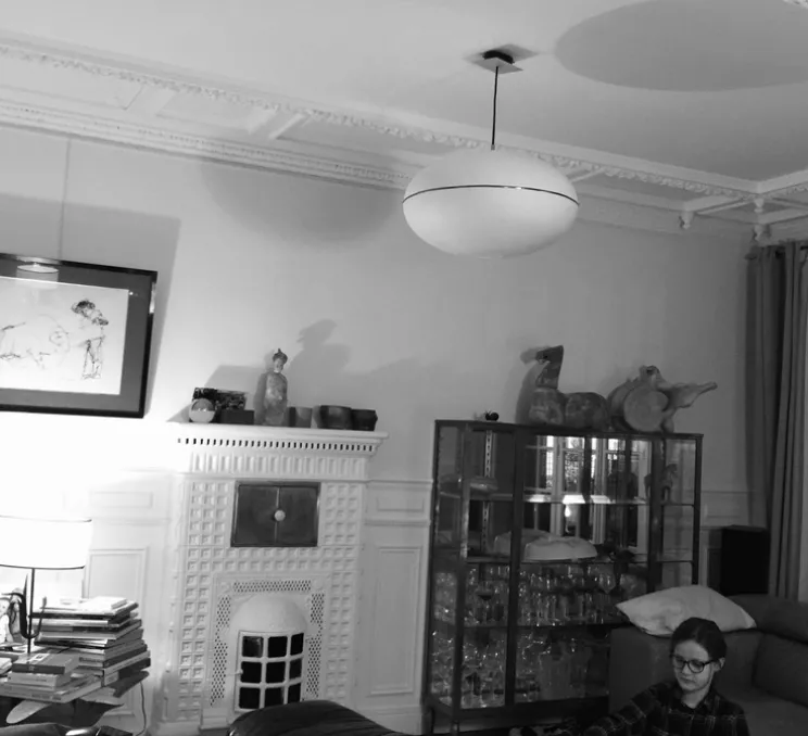 Cette suspension est une pièce unique, entièrement faite à la main, dans l’atelier de Céline Wright à Montreuil. Elle diffuse une lumière douce et raffinée, et crée une atmosphère poétique, partout où elle est placée. La disposition graphique et rayonnante des bandelettes souligne la pureté de ses formes cylindriques.