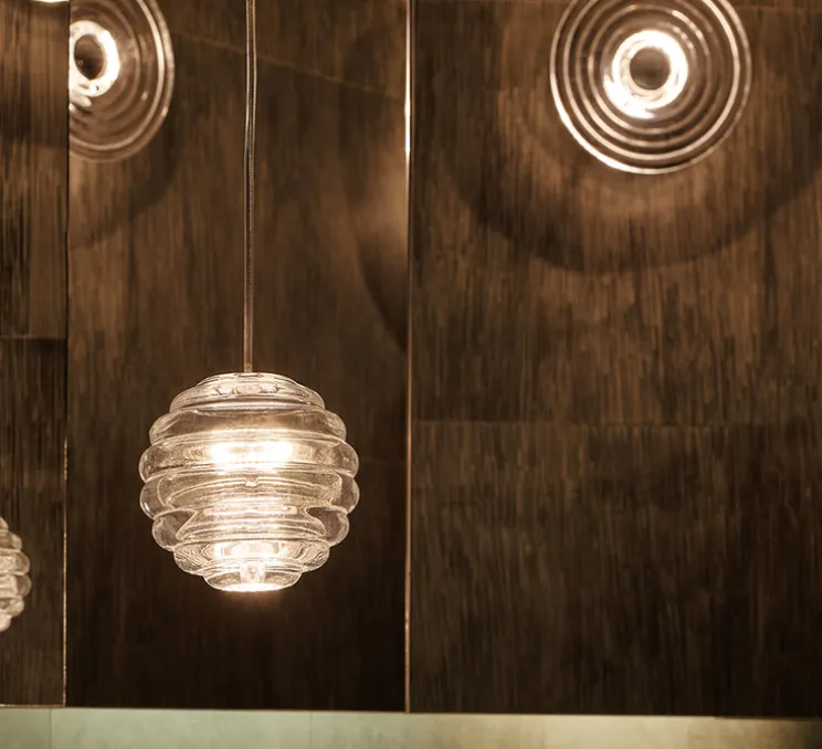 Son aspect esthétique se distingue par un design circulaire en verre transparent, évoquant la pureté et la luminosité. Le verre strié crée une diffusion de la lumière unique, projetant des motifs linéaires et rayés qui captent l’attention. Installez cette mini-suspension dans les couloirs, les salons ou les chambres pour ajouter une touche de sophistication à votre espace.