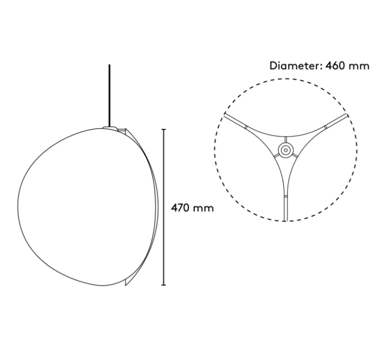 La suspension mesure 46cm de diamètre et 47cm de hauteur.