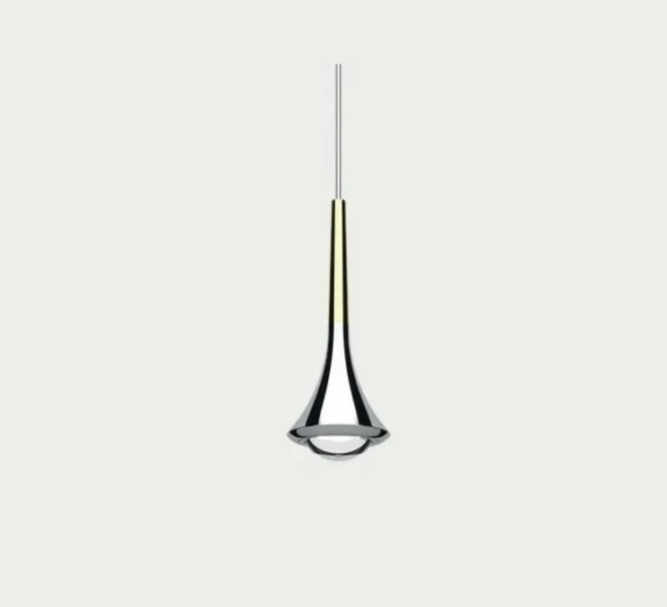 La Suspension Rain Cluster, composée de 7 pièces avec une rosace, marie subtilement le chrome et l’or pour créer une esthétique élégante et contemporaine.