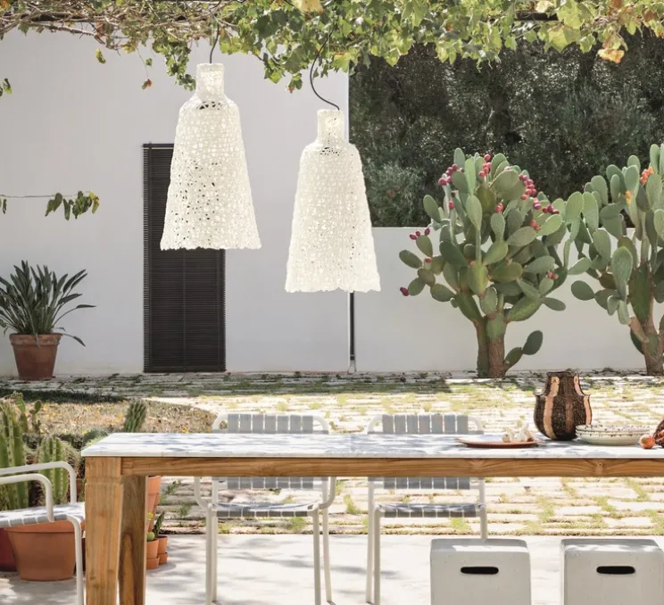 Random 96 est conçue à partir d’un maillage irrégulier réalisé en corde de polyéthylène haute densité. Elle représente la poésie d’un abat-jour en dentelle, tout en résistant parfaitement à l’eau et à l’humidité grâce à son indice de protection IP44. Avec son aspect à la fois rustique et élégant, elle apporte une sensation d’été et de voyage à vos espaces.