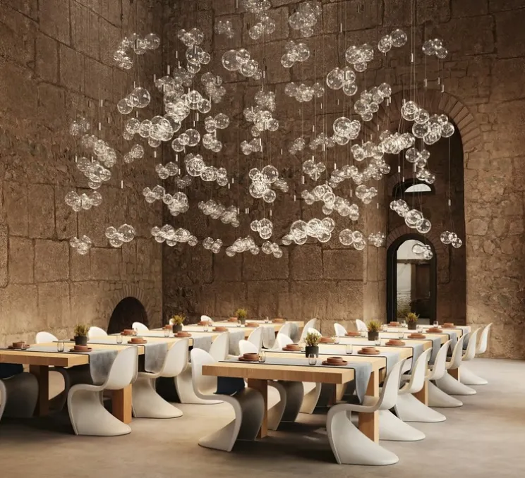 Composée de trois suspensions sphériques en verre soufflé, la Random Solo Cluster se distingue par son design aérien et harmonieux. Les trois sphères blanches givrées apportent une touche de légèreté et de caractère.