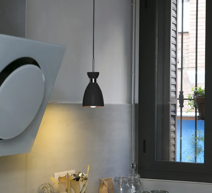 La suspension Retro noire et son intérieur or, a été designée par Manel Llusca pour la maison de luminaires espagnole Faro.