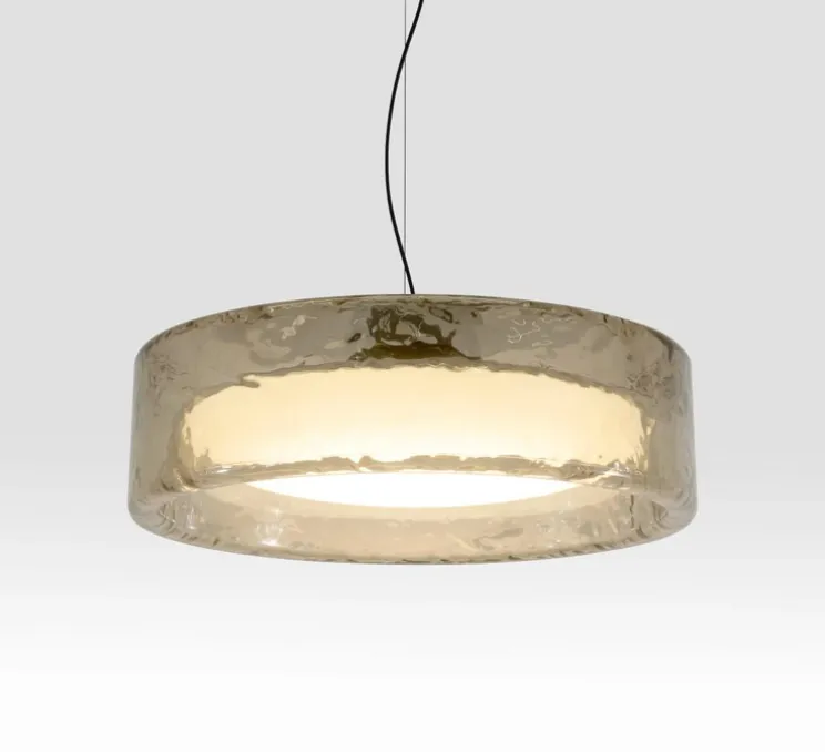 Avec son large diamètre de 90 cm et sa silhouette cylindrique, Ringo impose une forme simple mais saisissante. Son coloris fumé tamise la lumière et crée un effet de profondeur tout en douceur. Suspendue seule ou répétée en série, elle trouve naturellement sa place dans de vastes volumes : halls d’entrée, espaces hôteliers, projets architecturaux contemporains… Grâce à son éclairage diffus à 360°, elle structure visuellement l’espace tout en s’effaçant harmonieusement dans l’environnement.
