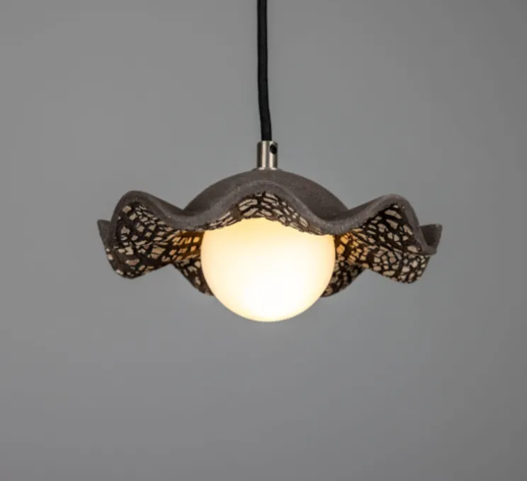 La finition rugueuse et fissurée en Argile Noire de l’abat-jour en céramique rappelle la texture vieillie de l’écorce d’arbre, ce qui ajoute une touche rustique et chaleureuse aux intérieurs.