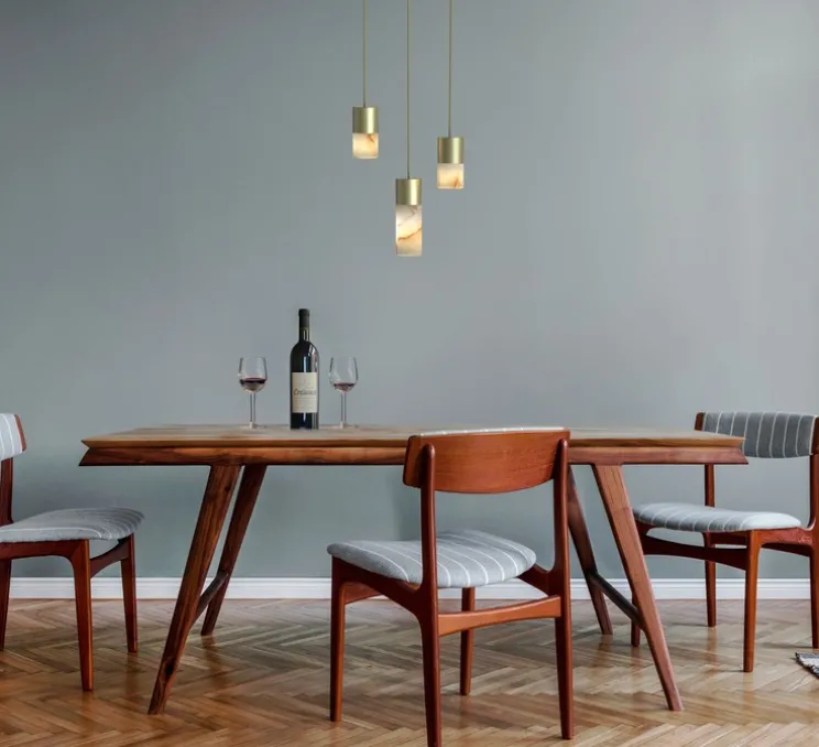 Robin et Nedgis s’associent pour vous proposer la suspension Rock en laiton et albâtre.