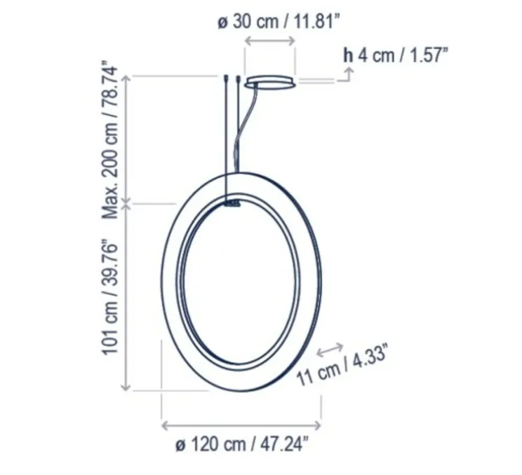 Le luminaire mesure 120cm de diamètre.