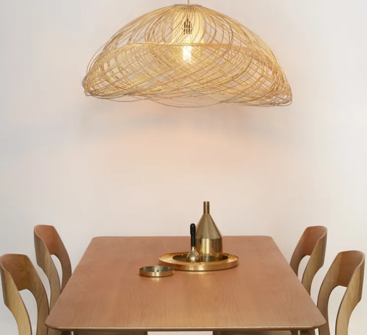 Cette suspension est idéale pour une salle à manger, une cuisine ou encore une salle à manger, et vous procurera une ambiance tamisée grâce à sa lumière filtrée par les fines tiges de rotin laissant passer des jeux d’ombres et de lumières.