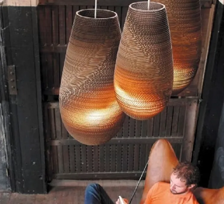 La suspension Drop est constituée de fines strates de carton découpées au laser et assemblées à la main dans les studios à Amsterdam.