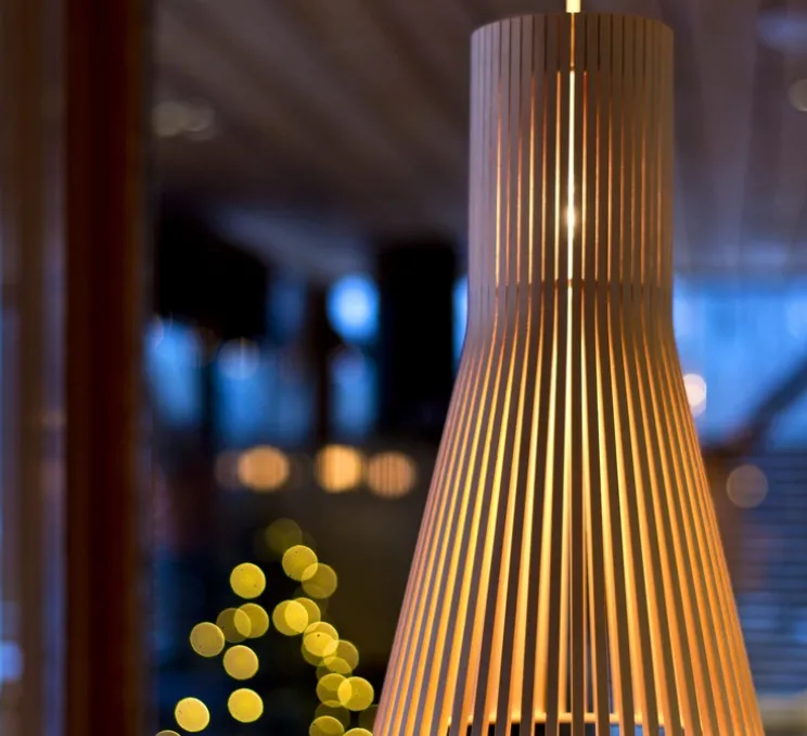 Cette lampe scandinave au design simple est composée de lamelles de bois et contreplaqué de bouleau certifié PEFC, un matériau écologique. Elles sont reliées à une structure légère en contreplaqué utilisé pour l’aviation.