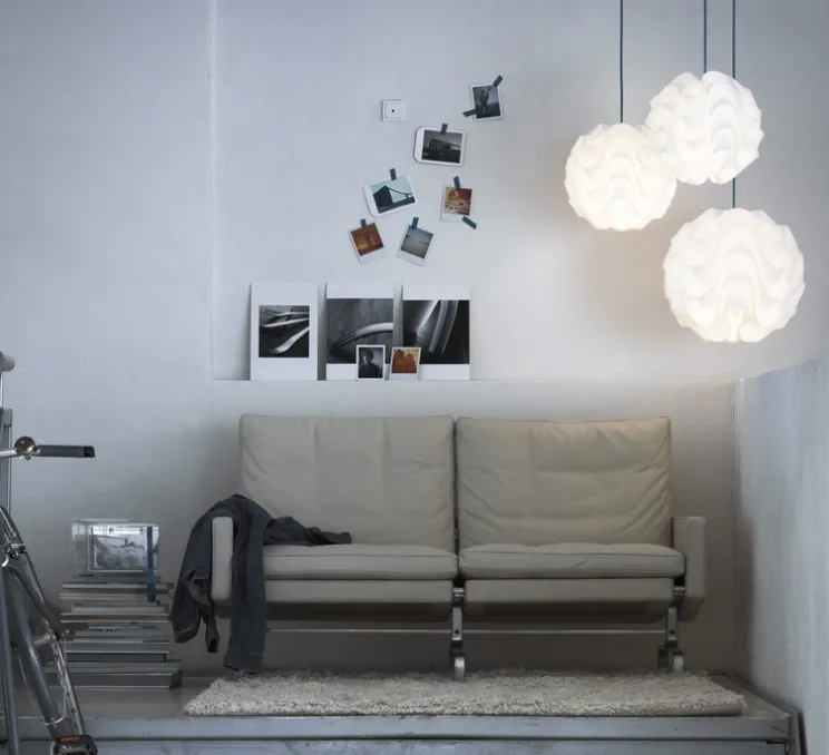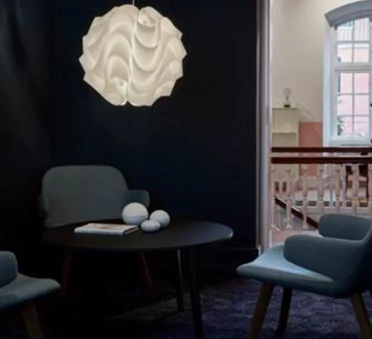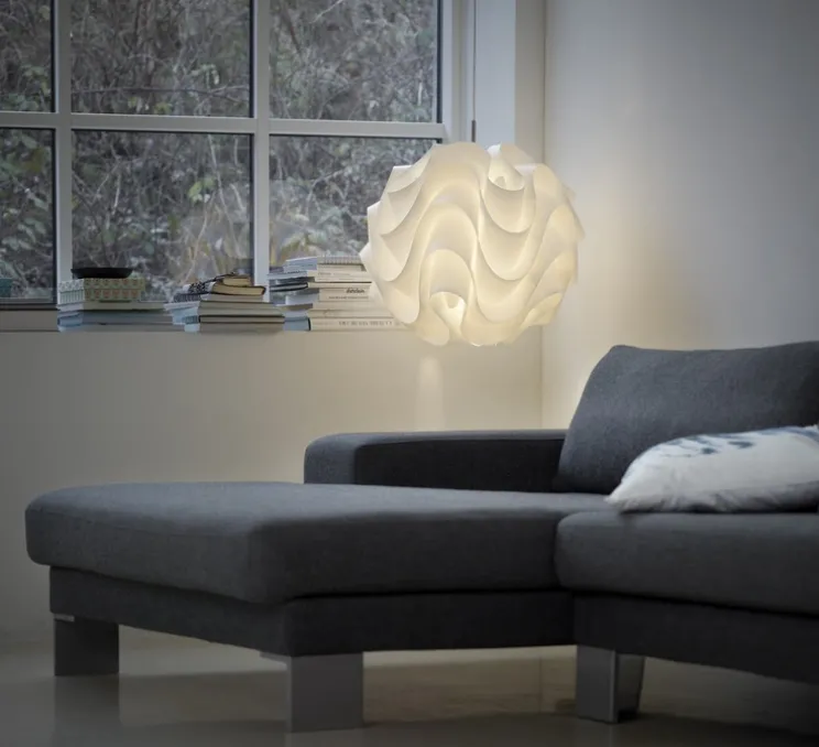 Il utilise les mathématiques pour pouvoir concevoir ce luminaire, en effet, on peut remarquer des courbes sinusoïdales sur l’abat-jour ! Sa couleur blanche vient également renforcer le côté contemporain de la suspension !