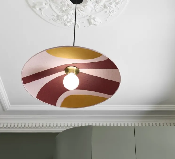 Voici la suspension D80 Sonia Laudet de couleur rose seventies de la designer du même nom pour la maison d’édition française market Set !