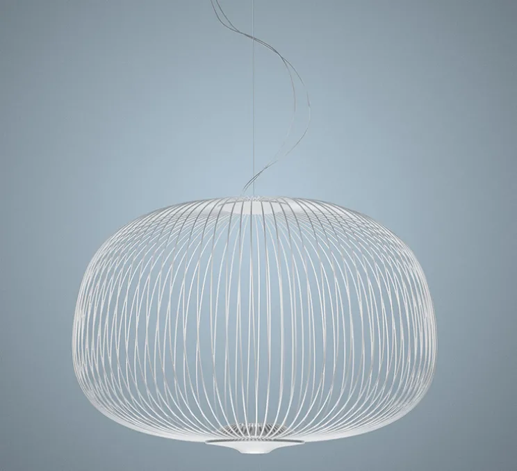 De nature sobre, le luminaire Spokes s’adapte à tout type d’espace (domestique et public) : un séjour, une cuisine, un hall d’entrée, une chambre ou un bureau. Cette lampe aux formes sphériques et à l’allure légère dispose d’une source lumineuse LED 2700K 4080lm incluse ; elle permet d’obtenir des jeux d’ombres et lumières exceptionnels ; qui se projettent sur les parois de la suspension avec un effet de démultiplication.