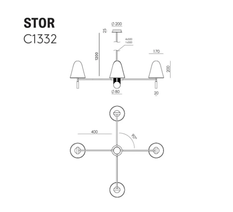 Équipée de quatre modules LED intégrés de 9W, Stor diffuse un éclairage indirect chaleureux de 2700K pour une intensité totale de 1800 lumens, dimmable en coupure de phase selon l’installation. D’un diamètre de 80 cm et d’une hauteur de 30 cm, elle se monte en saillie à l’aide de la rosace incluse (Ø2,5 cm x H20 cm). La hauteur totale se règle lors de l’installation en combinant les tiges filetées fournies (4×50 cm + 1×30 cm)