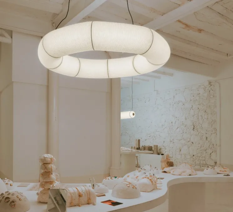 Suspension, Tekio Circular P8, papier Washi, LED, dim, 2200-2700K, 8084 lm, Ø140cm, H25cm – Santa & Cole