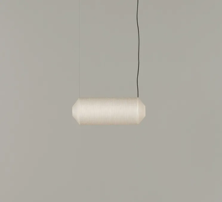 Tekio, qui signifie « adaptation » en japonais, fusionne tradition et modernité à travers un design contemporain et distinctif, mettant en avant des structures lumineuses délicatement enveloppées de papier artisanal. Inspiré par la lanterne japonaise traditionnelle en papier washi, datant du 14ème siècle et devenue un élément essentiel de la vie quotidienne au Japon, le designer londonien Anthony Dickens a su tirer parti de cette esthétique intemporelle. Le papier washi, notamment utilisé par Isamu Noguchi, est désormais inscrit au patrimoine culturel immatériel de l’humanité par l’UNESCO. Reconnaissant sa résistance et sa malléabilité exceptionnelles, le Washi offre une texture chaleureuse qui tamise la lumière de manière douce et subtile. La suspension Tekio Horizontal P1 se présente sous la forme d’un tube de 25cm de diamètre et 67cm de longueur.