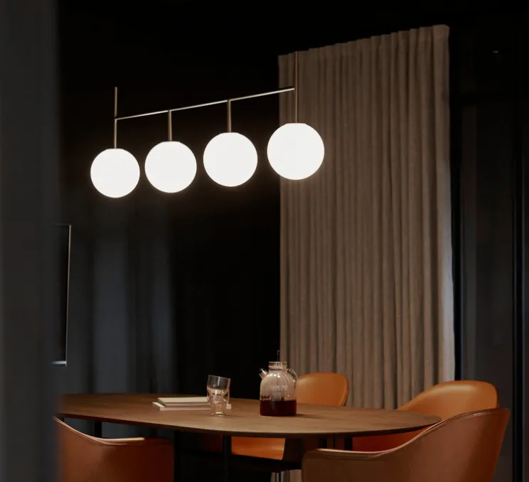 La suspension TR Bulb d’Audo Copenhagen, conçue par Tim Rundle, appartient à la collection TR et propose une solution d’éclairage graphique et fonctionnelle.