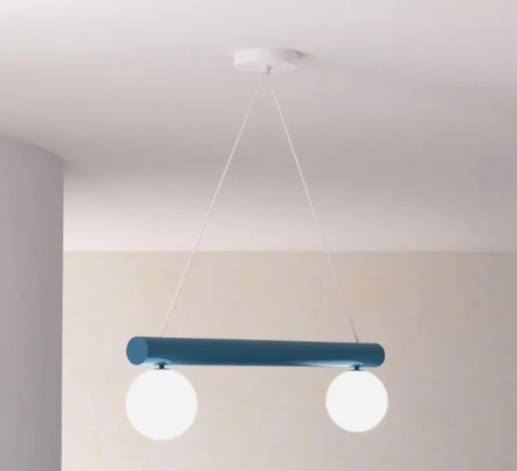 Suspension, Tube with globes and cones, bleu, L90cm, H87,3cm – Atelier Areti