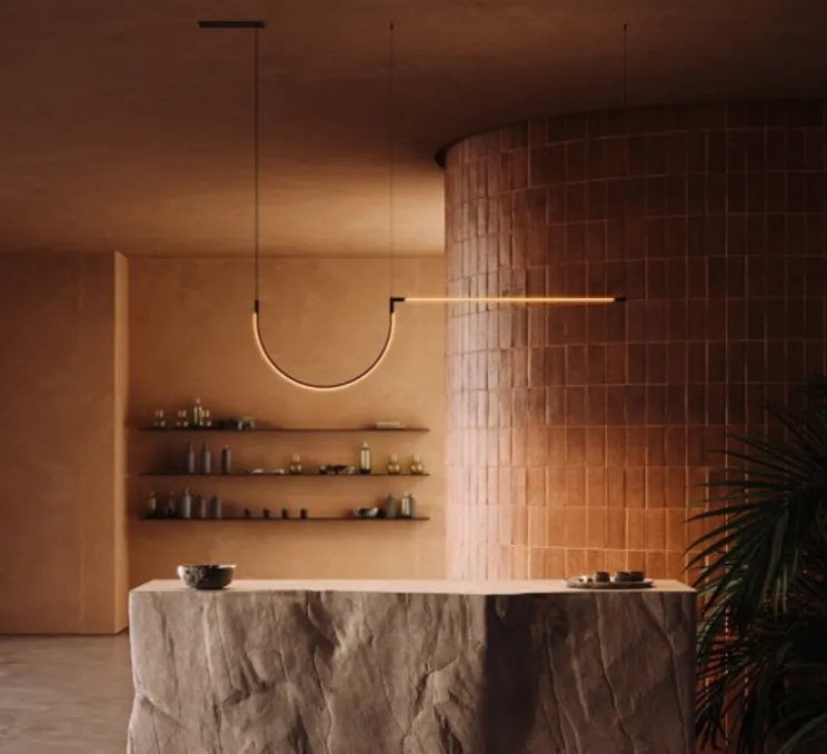 Avec sa silhouette longiligne et sa structure en aluminium noir, la suspension Tubs se distingue par son arche et son aspect graphique tubulaire. Son éclairage LED, à la fois direct et indirect, crée des ambiances lumineuses variées. Que ce soit pour illuminer un grand salon ou apporter une touche subtile à une salle à manger, elle offre une présence lumineuse équilibrée. La modularité de la collection Tubs permet également de personnaliser la forme de l’installation à l’aide de connecteurs adaptés, offrant une grande liberté de composition.