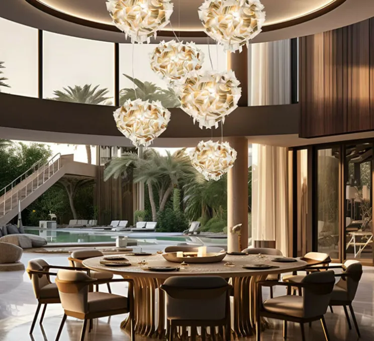 L’esthétique captivante de la Veli Aurea S offre une polyvalence remarquable pour l’aménagement intérieur. Les conseils décoratifs suggèrent de l’installer au-dessus d’une table ou dans un coin élégant pour créer un point focal saisissant. Son design organique et graphique en fait un lustre exceptionnel, parfait pour ceux en quête d’une expression artistique audacieuse. Les détails en or ajoutent une touche de luxe, tandis que le câble transparent assure une intégration harmonieuse dans tout décor.