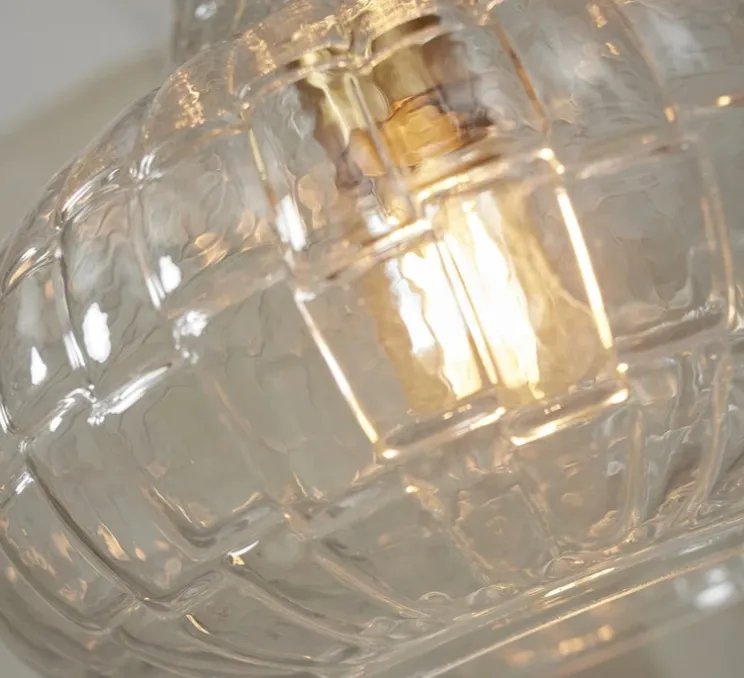 Ce luminaire d’intérieur décoratif se distingue par son design raffiné alliant transparence et touches dorées, apportant un charme Art Déco à votre espace.