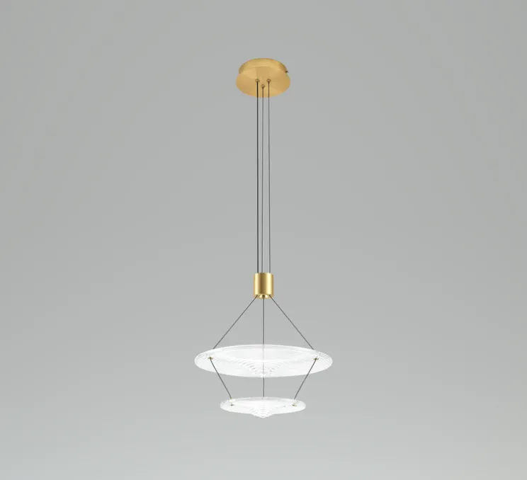 Ce luminaire est équipé d’une source LED intégrée, avec une intensité de 2700K et 830 lumens. La lumière est dimmable, permettant d’ajuster l’ambiance lumineuse selon les besoins. Venise se compose de deux verrines mesurant, pour la première, 38 cm de diamètre pour 4,6 cm de hauteur, et la plus petite mesure 23 cm de diamètre et 3,5 cm d’épaisseur. Les différents câbles noirs de 1,5 mètre chacun permettent une installation élégante et personnalisée.