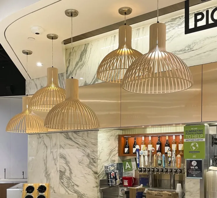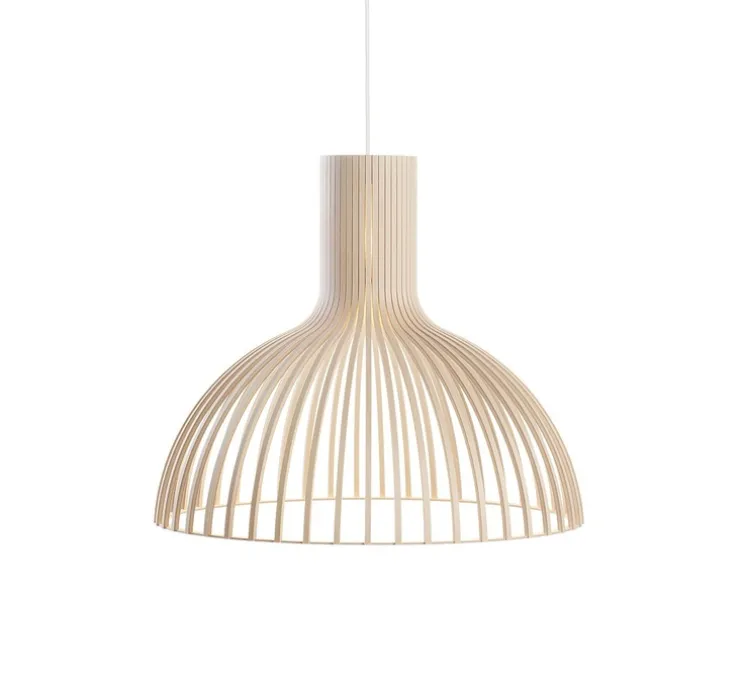 Voici la suspension Victo (Ø56cm) de coloris bouleau, naturelle et contemporaine, dessinée par Seppo Koho le designer à l’origine de la maison d’édition Secto design.