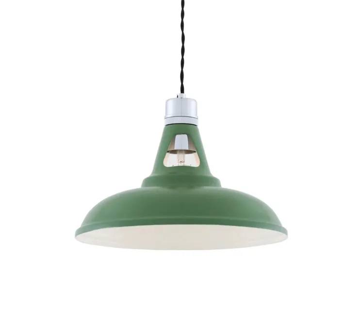 Le luminaire mesure 23cm de hauteur et 30,5 cm de diamètre. Le câble de 1m est inclus. Possibilité d’avoir un câble de 2m ou de 3m sur demande. L’ampoule E27 (LED, max 60W) n’est pas incluse. Ce luminaire existe en plusieurs coloris : bronze, noir, noir mat, gris, orange, rouge, blanc, jaune, vert foncé.