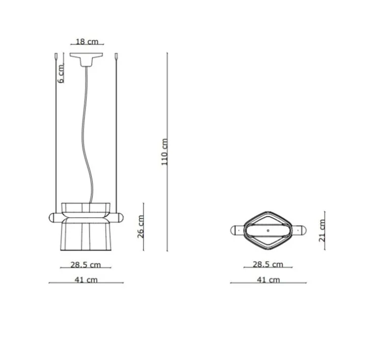 Le luminaire mesure 41 cm de longueur et 26 cm de hauteur. La source lumineuse n’est pas fournie. Nous recommandons 1 ampoule E27, 53W max.