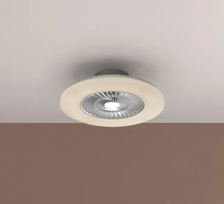 Conçu par le Studio MDC, ce ventilateur de plafond moderne et polyvalent se distingue par son design industriel et sa finition blanc opale. Idéal pour une installation intérieure, il ajoute une touche de sophistication mais avec discrétion à n’importe quel espace tout en offrant une fonctionnalité exceptionnelle.